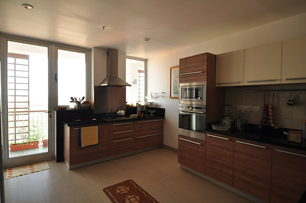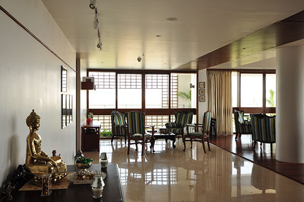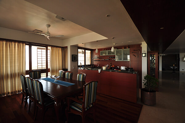 The client's aspiration was to create a “memory of place” when they move into their new apartment. So new furniture pieces were selectively designed to blend with their existing pieces and art works. An exhibit wall was designed with special lighting to celebrate these artworks. The new furniture pieces and wall treatment were crafted in wood to blend with the ambience. The colour palette is subdued for the apartment to augment the colours of the display painting.
